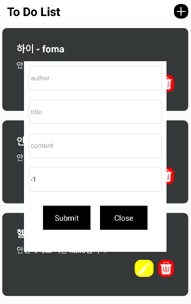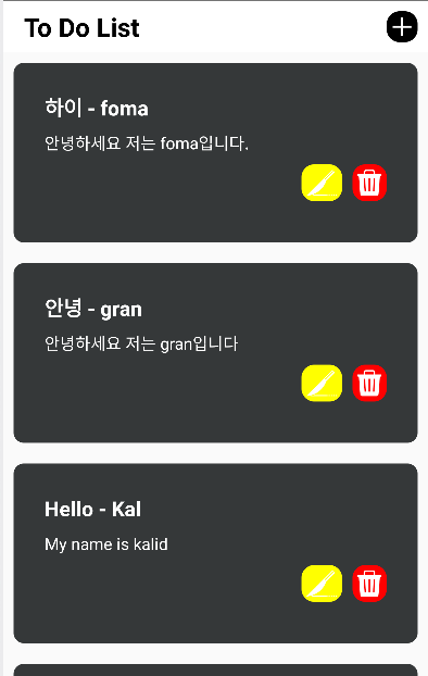 - React Native + Node.js + MySQL To do list ๋ง๋ค๊ธฐ 3 - React Native ํ๋ฉด ๊ตฌํํ๊ธฐ (Implement frontend)